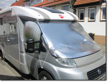 Abends, wenn es kalt wird, wird die Frontmatte wieder geschlossen. Eine wohlige Wärme entsteht im Fahrerhaus. Sie sparen Gas und Strom.